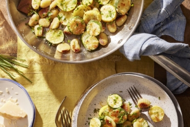 Pan-Seared Gnocchi with Parmesan-Roasted Summer Squash Recipe Courtesy of Country Living and Kate Merker Instead of boiling gnocchi like pasta, a quick turn in a hot skillet gives them a slight char and a delightful crunchy-chewy texture. Served with seasonal roasted squash, you’ve got a weeknight dinner the who fam will clamor for. Ingredients For Pan-Seared Gnocchi with Parmesan-Roasted Summer…
